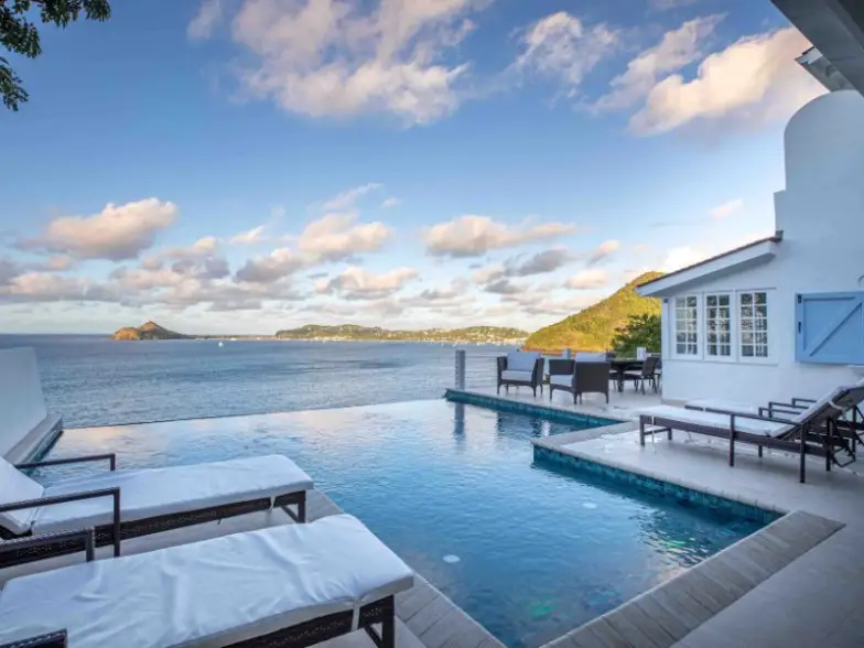 Villa Paradise es una villa de tres dormitorios que ofrece un verdadero paraíso frente al mar. Con capacidad para ocho invitados, se asienta sobre un promontorio que ofrece increíbles vistas del mar, Martinica y Pigeon Island, junto con mucha privacidad. Tiene un espacio de estar al aire libre cubierto y descubierto, que incluye tumbonas, dos mesas de comedor, una barbacoa y un brasero, y una piscina de borde infinito. Todas las habitaciones tienen aire acondicionado y también tendrás Wi-Fi gratis y televisión por cable. Los huéspedes también tienen acceso gratuito a las instalaciones del Windjammer Resort, a solo media milla de distancia, que incluyen la playa, las piscinas, los restaurantes y un bar.