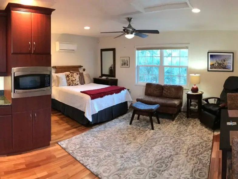 Privada, cómoda y equipada con todos los lujos de una pequeña casa, la pequeña casa de huéspedes es la opción económica perfecta. Salga para ser recibido por un elegante espacio de piscina completo con bañera de hidromasaje y asientos en el patio.