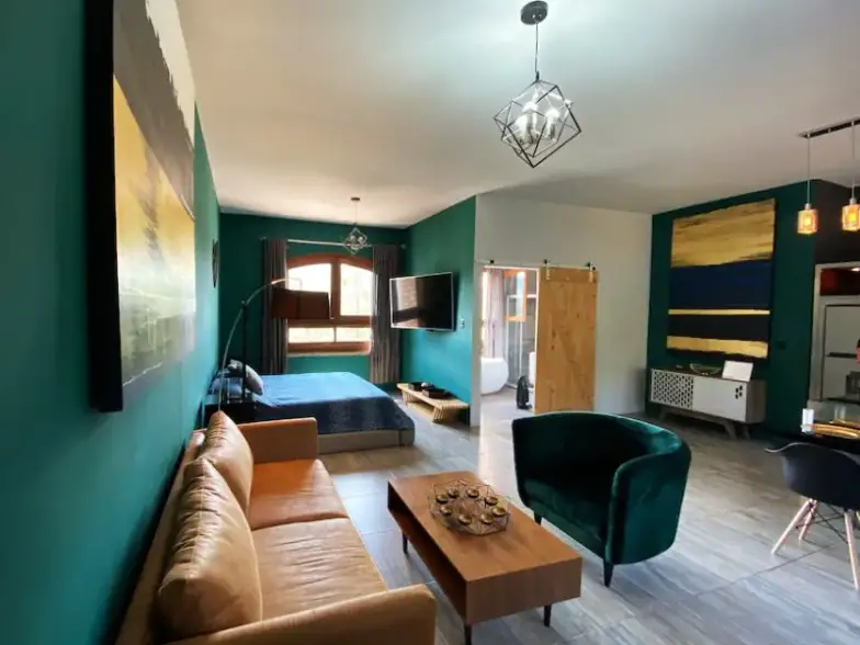The Luxurious Loft en Casa Barranqueña ofrece un entorno de vecindario tranquilo y una hermosa vista de La Bufa, una montaña popular para practicar senderismo, y se llega al centro de la ciudad en unos 20 minutos a pie o en un viaje corto en Uber. Después de un día de exploración, incluso puede regresar y sumergirse en una bañera independiente con vista. El espacio tiene capacidad para dos y también viene con una cocina que cuenta con electrodomésticos modernos de alta gama: un centro comercial está al otro lado de la calle para comprar ingredientes para preparar sus propias comidas.