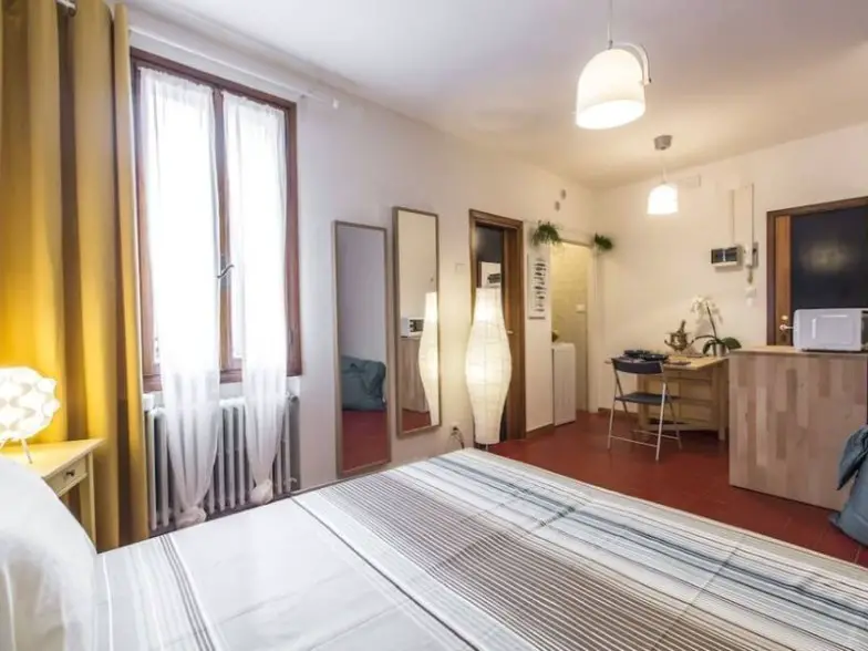 Un grupo de hasta seis personas puede quedarse aquí y usar los dos dormitorios y los dos baños para disfrutar de Venecia. Tiene dos plantas, la primera con un dormitorio, baño, cocina y sala de estar, y luego la segunda con un dormitorio y baño. Esta es una opción de Airbnb para familias porque hay una cuna con ropa de cama y un cochecito de bebé disponibles a pedido y por tarifas adicionales. Los arreglos para dormir son una cama doble, dos camas individuales y un sofá cama. Los huéspedes tienen acceso a todas las áreas del apartamento.