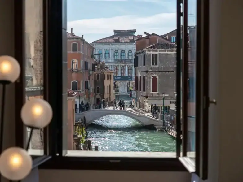 También puede reservar esta habitación privada en un apartamento en Airbnb para su viaje a Venecia para hasta dos personas. El anfitrión sigue estrictas pautas de limpieza para su seguridad, y el espacio ofrece hermosas vistas al canal. ¡Puedes ver pasar las góndolas por tu ventana aquí! La habitación es espaciosa y cuenta con diversas comodidades, como Wi-Fi, TV, toallas, secador de pelo, jabones y uso del área del pasillo con una máquina de café. Cuando se hospede aquí, estará entre Rialto y San Marco, lo que significa que tendrá muy fácil acceso a los principales lugares de interés turístico, restaurantes, tiendas y opciones de transporte público.