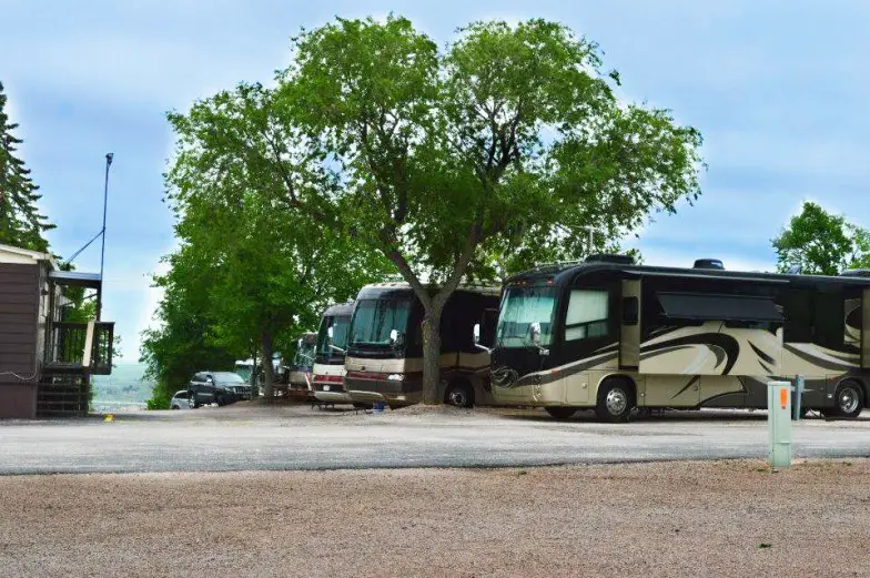 El Rapid City South RV Park está ubicado a cinco millas del centro de Rapid City y a 20 millas del Monte Rushmore. Es una base de operaciones conveniente con conexiones completas de 30/50 amperios para vehículos recreativos. El campamento tiene áreas para pasear perros, un pequeño parque infantil y buena conexión Wi-Fi. Otras características son las instalaciones de lavandería que funcionan con monedas, la recepción de TV y una estación de descarga. La tarifa por noche oscila entre $ 60 y $ 90 según el tamaño del sitio. Hay algunas restricciones de raza para perros y un límite de dos perros. En general, hay 92 sitios de conexión completos, con algunos back-ins y otros pull-through.