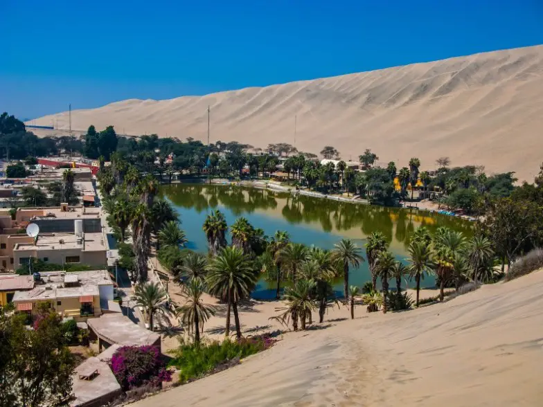 Aquellos que buscan emociones pueden visitar Huacachina, ya que las dunas de arena circundantes alcanzan hasta 328 pies de altura y ofrecen la oportunidad de practicar sandboard o simplemente contemplar sus paisajes aparentemente interminables que se extienden hasta el horizonte. La ciudad oasis es popular para aquellos que quieren andar en buggy y surfear en la arena, mientras que la ciudad bordeada de palmeras también ofrece muchos hoyos para nadar para darse un chapuzón.