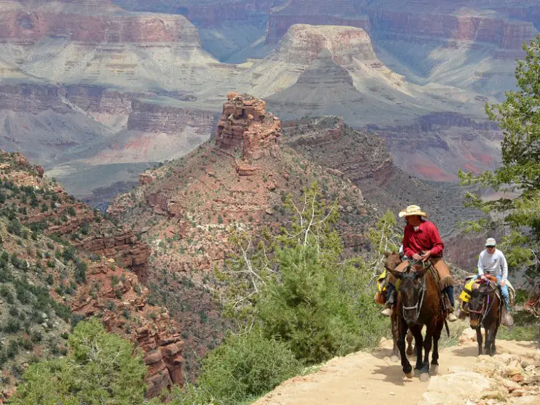Montar en mula por los caminos rocosos del cañón es una de esas excursiones clásicas. Los visitantes pueden trotar por el North Rim en un viaje de una hora o de medio día. Puede registrarse en el Grand Canyon Lodge.
