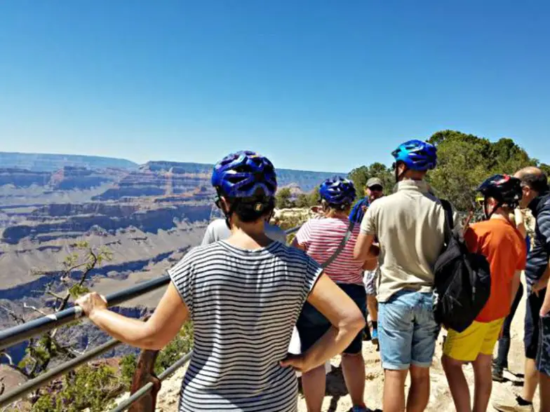 Hermit Road es un tramo panorámico en el South Rim, que ofrece vistas espectaculares y un terreno relativamente fácil para andar en bicicleta. Para el tramo cuesta arriba más difícil, los huéspedes son trasladados en autobús, que también lleva el equipo. Obtendrá una vista de cerca guiada por expertos de esta carretera icónica, que está parcialmente libre de tráfico de vehículos. Las bicicletas y los cascos están incluidos.