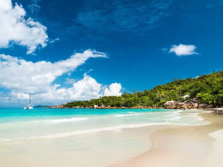 Ubicada en medio de las cálidas aguas del Océano Índico, Seychelles es uno de los destinos más bellos del mundo, famoso por sus playas solitarias. Dirígete a la isla norteña de Praslin para disfrutar de las costas más hermosas, donde su arena blanca como la nieve y los cocoteros que se balancean aseguran que nunca querrás irte. Anse Intendance es una maravilla natural virgen, Anse Lazio es amado por sus paisajes perfectos para postales, mientras que Anse Source D'Argent es conocida por sus idílicas aguas azules.
