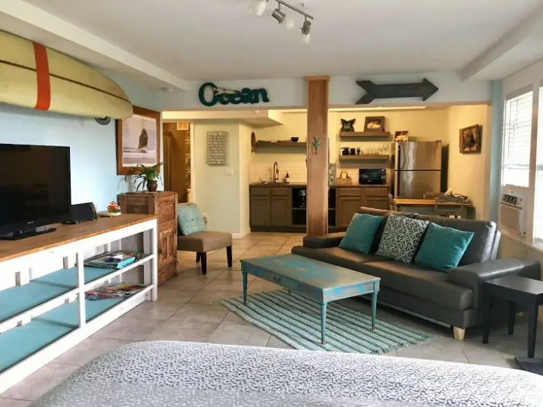 Ubicado en el lado del sonido, este espacio de estudio puede alojar hasta tres personas con una cama king-size y un sofá, a poca distancia a pie o en bicicleta de la playa. Viene con dos bicicletas, kayaks, SUP, sillas de playa y una sombrilla, mientras que los perros son bienvenidos por un cargo adicional. Tendrá un televisor inteligente y una parrilla de gas para cocinar, mientras que el anfitrión es un ex surfista profesional y ofrece lecciones con todo el equipo incluido por una pequeña tarifa.
