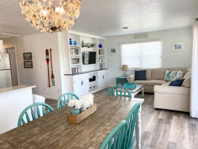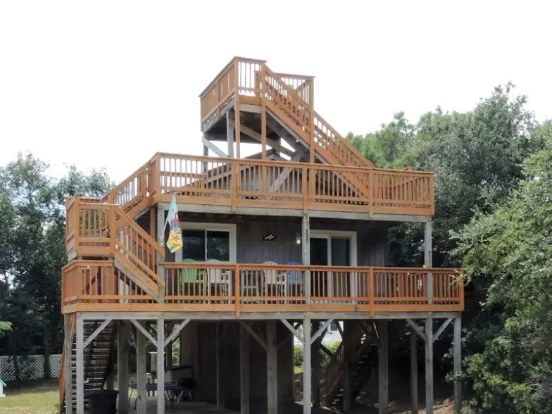 Esta cabaña de playa en el distrito Gallery Row de Nags Head está a una cuadra y media del acceso a dos playas y tiene capacidad para hasta seis personas en tres habitaciones, además de su perro de 30 libras o menos. Incluye muchas comodidades excelentes para pasar tiempo en la arena, que incluyen una cancha de playa, juguetes de playa, carpas, sillas y hieleras, aunque querrá traer sus propias toallas de playa. Hay un porche delantero cubierto con sillas Adirondack para relajarse con una vista, junto con entretenimiento interior como un Smart TV de 40″ con reproductor de DVD y una gran colección de DVD, juegos y libros. También se proporciona servicio de lavandería y una ducha al aire libre.