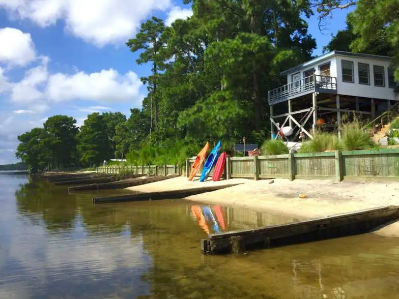 Ubicado justo en la playa, este bungalow de una habitación tiene capacidad para cuatro, con vistas a la confluencia del río North y el sonido de Albermarle. Tendrá su propio tramo de arena privado, mientras que las playas y atracciones de Outer Banks están a solo 15 minutos. Desde aquí, un remo corto (los kayaks están incluidos) lo llevará a costas vírgenes con cipreses y largas playas vírgenes. Disfrute cocinando en la parrilla de carbón y reuniéndose alrededor de la hoguera al aire libre; usted y su amigo de cuatro patas también apreciarán tener un patio cercado.