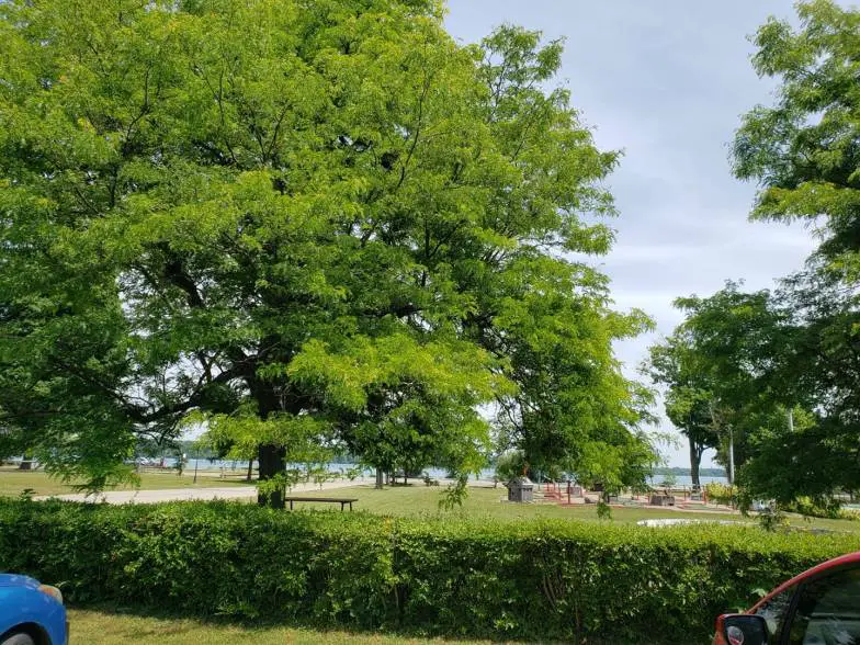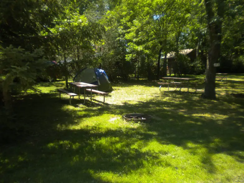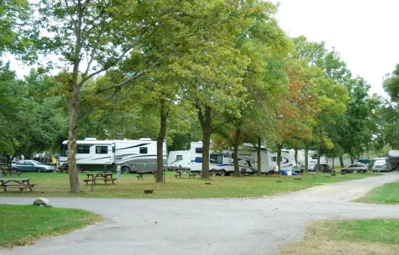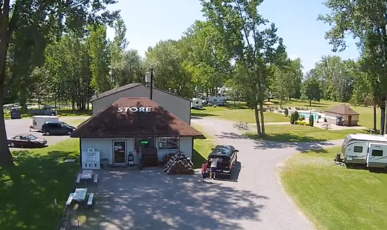 Riverside Park es un destino de vacaciones a lo largo del río Upper Niagara donde puede traer su RV, remolque, ventana emergente o tienda de campaña. También hay habitaciones de motel disponibles en el lugar si no desea acampar. Aquí hay un muelle para que puedas traer tu bote e ir a pescar. Otras cosas divertidas para hacer en el área incluyen bodegas, teatros, playas, centros comerciales y campos de golf. Las instalaciones del campamento incluyen duchas de agua caliente, lavadoras que funcionan con monedas, baños limpios y una pequeña tienda con artículos básicos para acampar. También hay una piscina, parque infantil, sala de juegos, cancha de fútbol, herraduras y minigolf para jugar cuando acampas aquí.