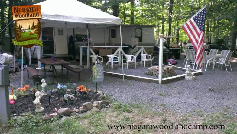 Este campamento es el campamento estadounidense más cercano a las cataratas del Niágara y está a solo seis millas de las cataratas americanas. Niagara Falls Campground & Lodging ofrece sitios para tiendas de campaña y vehículos recreativos y tiene pozos de fuego, Wi-Fi, agua, electricidad y conexiones de alcantarillado. Aquí hay una tienda de regalos, lavandería, duchas, piscina, parque infantil y área para pasear perros. La temporada de acampada va de abril a octubre.