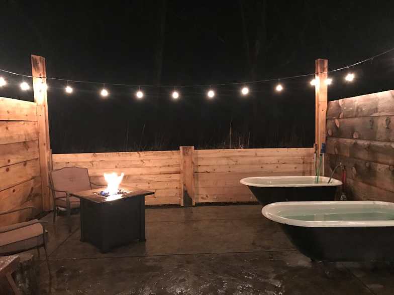 Cuando viaje por el este de Oregón, considere hospedarse en esta yurta rústica con acceso a aguas termales. Esta yurta tiene una cama tamaño queen para acomodar a dos personas. También viene con una mini nevera, cafetera, mesas auxiliares y sofá. Tiene calefacción geotérmica para el invierno y aire acondicionado para el verano. No hay baño en la yurta, por lo que deberá caminar un minuto hasta el albergue para ir al baño y ducharse. A los huéspedes les encanta el patio privado con dos bañeras, una ducha al aire libre, una mesa de picnic, una hoguera y sillas. Sin embargo, no puedes traer mascotas a esta experiencia de yurta.