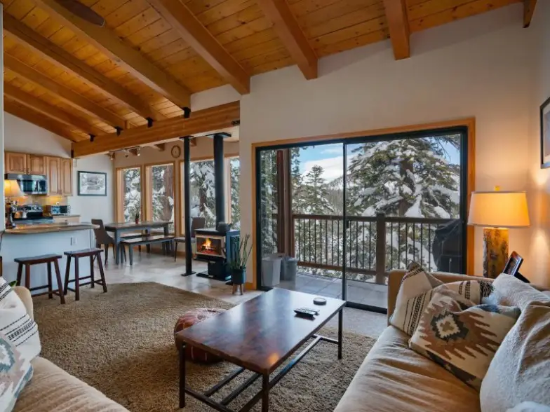Para aquellos que desean acceso inmediato a las pistas de Mammoth Lakes, este condominio con acceso directo a las pistas de esquí que brinda acceso a Canyon o Eagle Lodge es una excelente opción. Incluye dos dormitorios más un altillo, con capacidad para siete personas, además de una chimenea a leña con suministro de leña, televisores LED, un reproductor de DVD y un balcón para disfrutar de las espectaculares vistas y el aire fresco. También tendrá acceso a un spa y sauna bajo techo durante todo el año, Universal Gym y una lavandería central.
