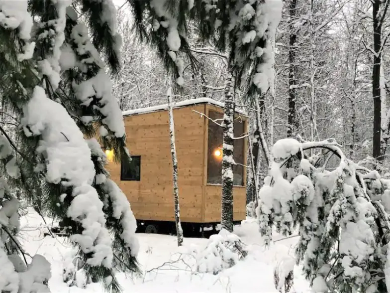 Si anhelas paz, tranquilidad y nieve en un lugar que te haga sentir que finalmente lograste escapar de la carrera de ratas, esta pequeña casa sin conexión a la red ubicada en el bosque es ideal. Si bien estará inmerso en un paraíso invernal lejos de todo, no tendrá que sacrificar las comodidades del hogar. Incluye una pequeña cocina con mini-nevera, anafe eléctrico y lo esencial para cocinar junto con una cama tamaño queen y un banco con acolchado, con capacidad para dos personas cómodamente o un máximo de tres personas. Wi-Fi está disponible a través de Verizon Hotspot, pero este es el lugar perfecto para deshacerse de los dispositivos electrónicos y sumergirse en la naturaleza por un tiempo.