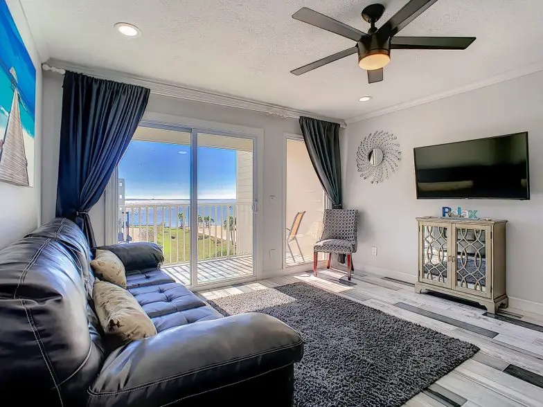 Para aquellos que buscan frente a la playa asequible, es difícil superar esta opción, que incluye un balcón privado para disfrutar de la hermosa playa y las vistas del Golfo desde el cuarto piso. Tendrá acceso a las comodidades del centro vacacional, que incluyen una piscina y un tiki bar junto a la piscina, parrillas junto a la playa, canchas de voleibol y lavandería. El espacio del estudio tiene capacidad para cuatro personas con una cama tamaño queen y una cama de tamaño completo. También incluye conexión Wi-Fi gratuita, TV y zona de cocina con dos fogones, nevera, microondas y cafetera.