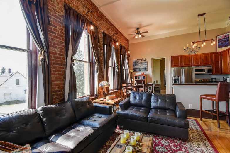 La Mansión del Gobernador admite mascotas y cuenta con muchos lujos ubicados a solo media cuadra de la calle principal del centro. Disfrute de la elegancia de antaño en una suite de tres dormitorios y dos baños que abarca la unidad principal de la mansión, construida por el exgobernador de Colorado, Jesse McDonald en 1893. Tiene capacidad para seis personas, aunque es posible hasta ocho. Los anfitriones tienen la amabilidad de proporcionar máquinas de ruido blanco y tapones para los oídos para aquellos que son sensibles en caso de que haya ruido de la calle, y tendrá una sala de estar con cómodos sofás de cuero, un armario antiguo, una chimenea y un televisor cargado con Netflix y HBO. . También hay una mesa de billar e incluso una sauna para relajarse. El dormitorio principal es especialmente impresionante, con su propio baño en suite con jacuzzi.