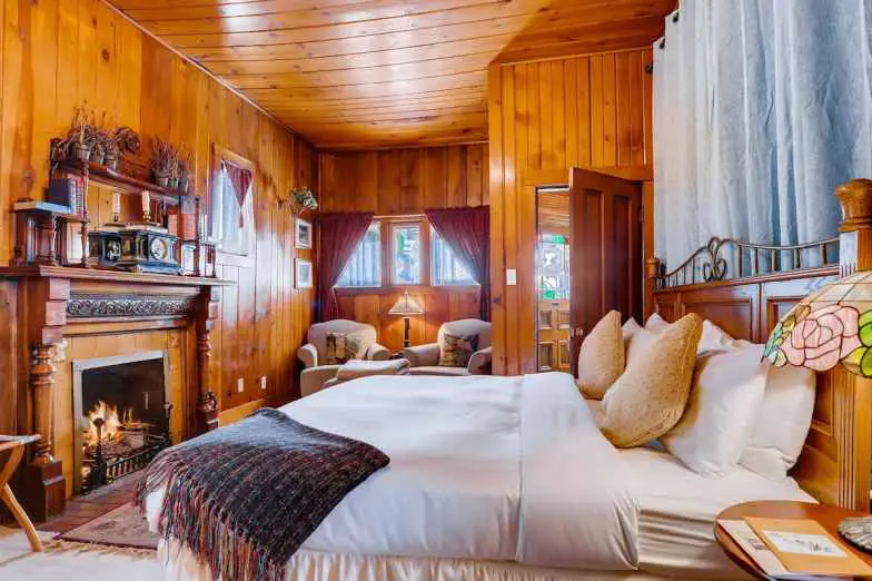 Esta habitación privada para dos está ubicada en un hotel boutique que se encuentra dentro de una casa victoriana de la década de 1880 en el centro de la ciudad. El antiguo salón de damas está en la planta baja de la casa y ofrece mucho espacio, además de una cama tamaño king y un baño privado renovado. Tendrás tu propia chimenea de gas personal, el lugar perfecto para acurrucarte con un buen libro o una copa de vino. Se puede acceder a Wi-Fi de alta velocidad en toda la casa, incluida su habitación, y hay múltiples espacios compartidos que se pueden disfrutar, que incluyen una cocina, sala de estar y comedor. Al aire libre hay otra chimenea y un jacuzzi.