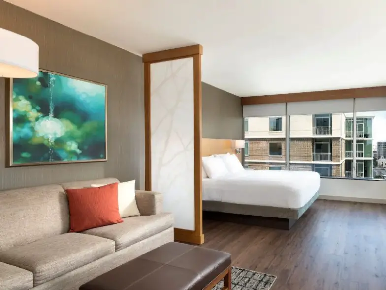 El Hyatt Place Austin Downtown ofrece una experiencia de estadía en Austin llena de desayuno gratis, Internet gratis, una piscina, un gimnasio y un restaurante. Hay habitaciones elegantes con características de alta tecnología y camas muy cómodas. Mientras tanto, el centro de convenciones y 6th Street están cerca para comodidad de los huéspedes. Hay un bar en el lugar que sirve café y bebidas alcohólicas por la noche.