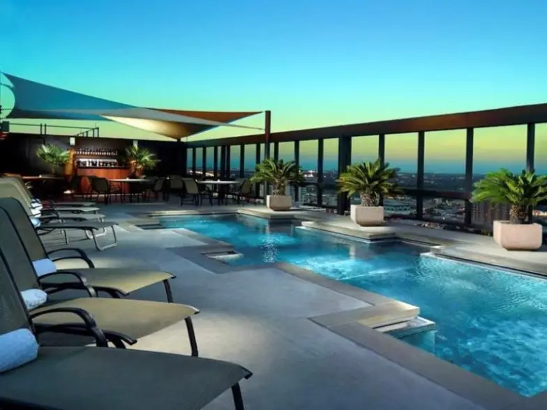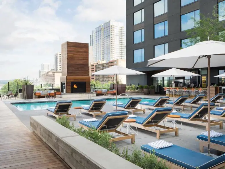 Si prefiere un hotel para sus vacaciones, este hotel de Kimpton también es una excelente opción en el distrito de Rainey Street. El hotel tiene una piscina en la azotea de servicio completo, música en vivo en Geraldine's y colchonetas de yoga en todas las habitaciones. También cuenta con un gimnasio abierto las 24 horas, servicio de café y té de cortesía por la mañana y habitaciones que admiten mascotas para que pueda traer a su cachorro. También hay bicicletas diseñadas a medida que puedes sacar para dar un paseo por la ciudad. Únase a la hora del vino todas las noches y tome su café de la mañana en el Café 605.