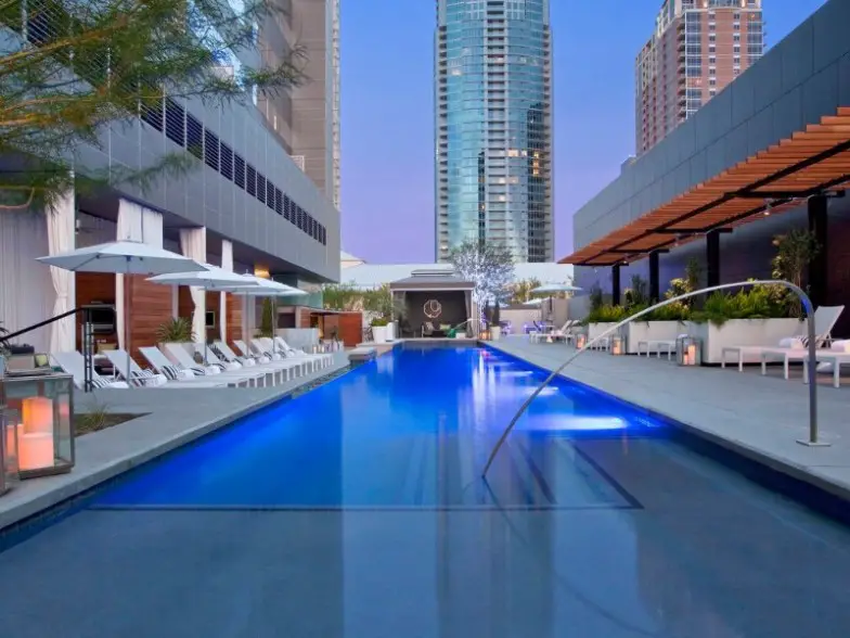 Estarás justo al lado del icónico lugar Austin City Limits cuando te hospedes en W Austin para tu próxima estadía en Texas. The W Austin tiene un restaurante en el lugar que sirve ingredientes de origen local y suites de lujo con vistas al lago o al centro. El servicio de habitaciones está disponible, y también hay una gran piscina con alquiler de cabañas. El AWAY Spa está en el lugar para ayudarlo a relajarse en su escapada y sentirse increíble con un masaje, depilación, manicura, pedicura u otro tratamiento corporal. A la gente le encanta quedarse aquí para estar cerca de la acción de la música en vivo en Austin y sentir el pulso de la ciudad.