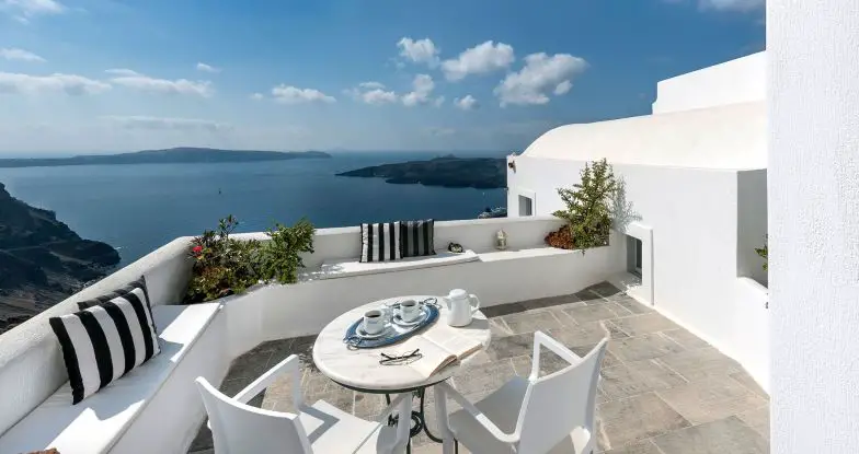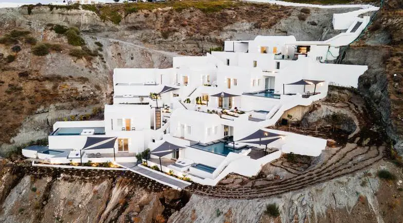 Espectaculares puestas de sol y vistas idílicas desde lo alto de los acantilados son solo dos de las muchas razones por las que Santorini a menudo se considera una de las islas más románticas del mundo . Esta isla griega verdaderamente pintoresca es el hogar de algunos de los complejos turísticos de lujo más impresionantes del mundo, cada uno con un telón de fondo de aguas azules y paredes blancas arqueadas. Muchos de estos resorts de lujo se encuentran al borde de la caldera volcánica, lo que significa despertarse con vistas ininterrumpidas que se extienden por millas hacia el mar.