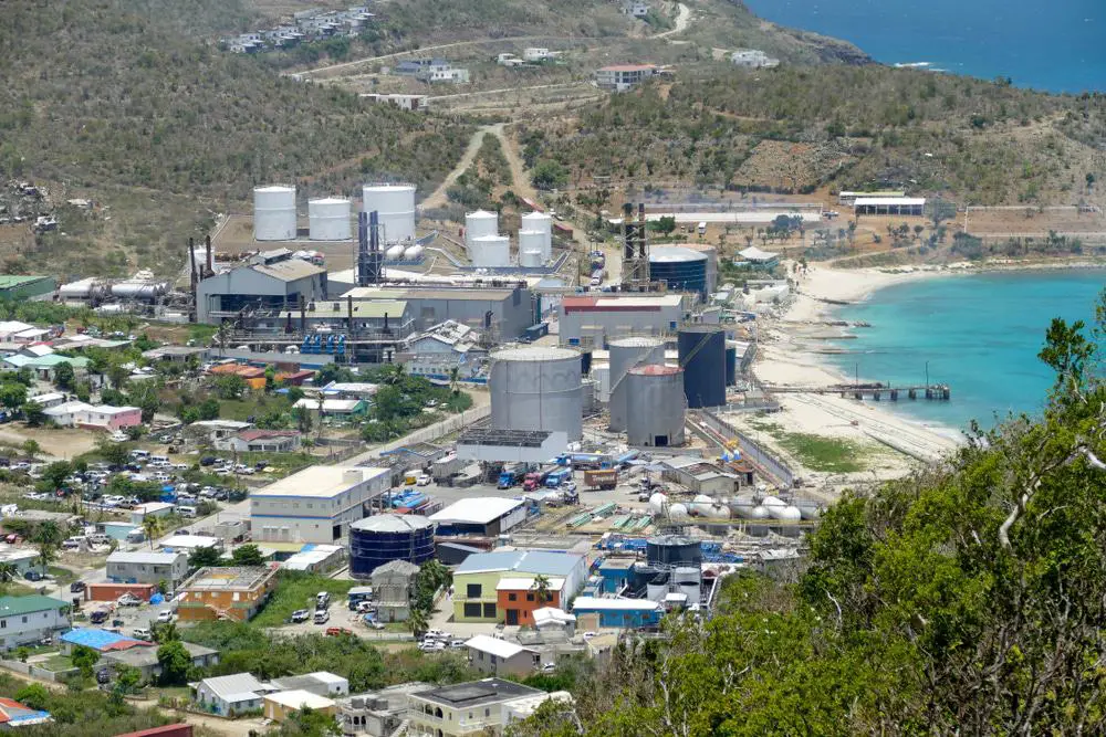 Hay una hermosa isla en los Sotavento en el Caribe que se divide en gran medida de este a oeste; Pertenece a dos países.