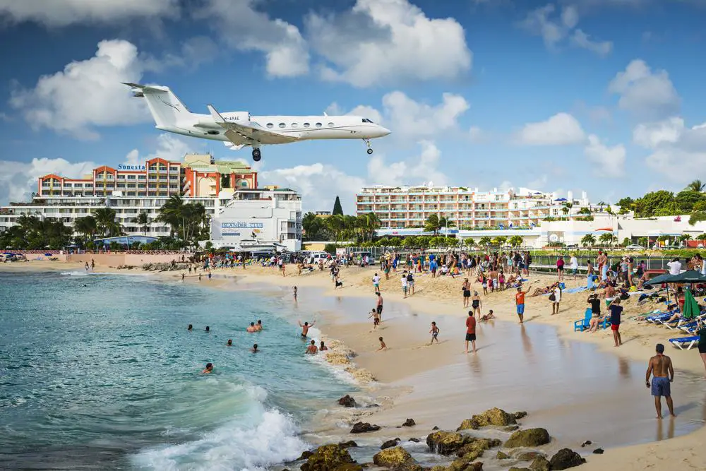 Maho está justo al final de la pista del Aeropuerto Internacional Princesa Juliana; multitudes se reúnen aquí para ver despegar los aviones.