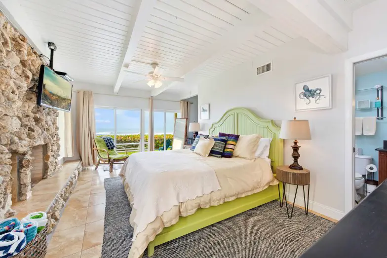 Uno de los mejores Airbnb frente al mar en Florida , esta estadía altamente calificada es una propiedad espectacular en la playa, que ofrece un entorno privado a poca distancia de restaurantes, alquiler de bicicletas, tiendas de surf y boutiques. Sin embargo, hay muchas razones para quedarse cerca, ya que tiene un gran patio al aire libre con cómodos asientos, una mesa de comedor, sillones y grandes sombrillas para pasar el rato bajo el sol de Florida durante todo el año. Encienda la parrilla y disfrute de una comida al aire libre por la tarde, tome un descanso del calor en la acogedora sala de estar con su televisor de pantalla plana o relájese en una de las habitaciones frente al mar. Por la noche, puede disfrutar de un baño en el burbujeante jacuzzi frente a la playa.