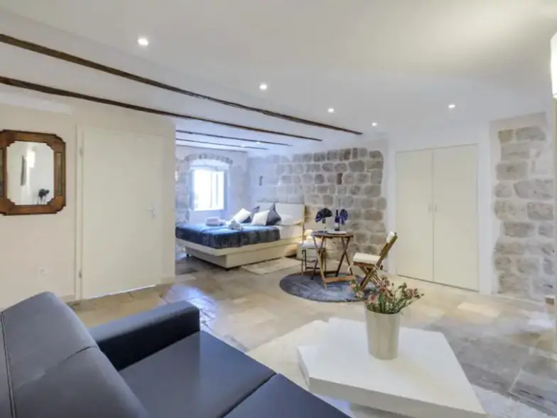 Ideal para una pareja o un viajero solo, este apartamento de un dormitorio está a solo una milla de la Ciudad Vieja, con hermosas vistas al mar y dos playas a solo cinco minutos a pie. También se puede llegar fácilmente a pie a restaurantes y una variedad de otras atracciones. Incluye un balcón para cenar al aire libre, una cocina bien equipada para preparar sus propias comidas, televisión por cable, una cama doble, baño con bañera y lavadora.