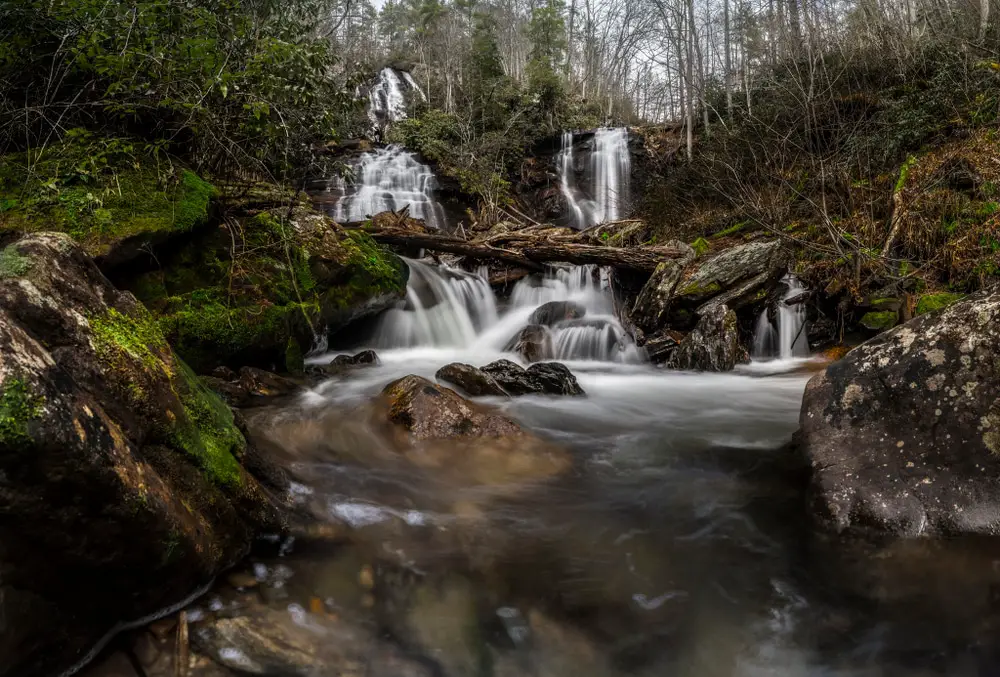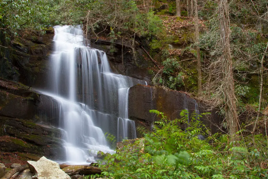 Becky Branch Falls se encuentra a través de los senderos de Warwoman Dell Trail y Bartran Trail. Dentro de un circuito de 1.4 millas, verá un trío de cascadas con fuertes caídas de agua durante los meses de invierno y primavera. El pequeño puente de barandillas de madera es pintoresco y de fácil acceso desde el sendero de senderismo. Notará que el sendero se eleva sobre un borde que está situado por encima de Becky Branch. Hay un túnel que fue construido en 1854 para drenar bajo el lecho del ferrocarril. Hay mucha historia y hermosos paisajes que descubrir en Becky Branch Falls.