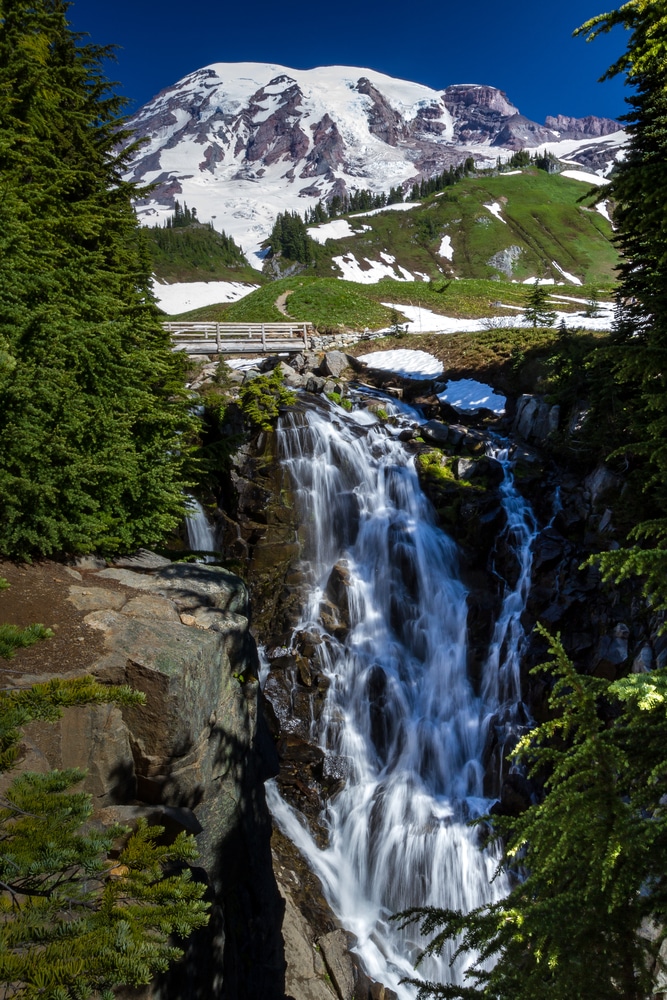 Las Cataratas del Mirto son conocidas y apreciadas por sus vistas frente al Monte Rainier, que es la montaña más magnífica de Washington.