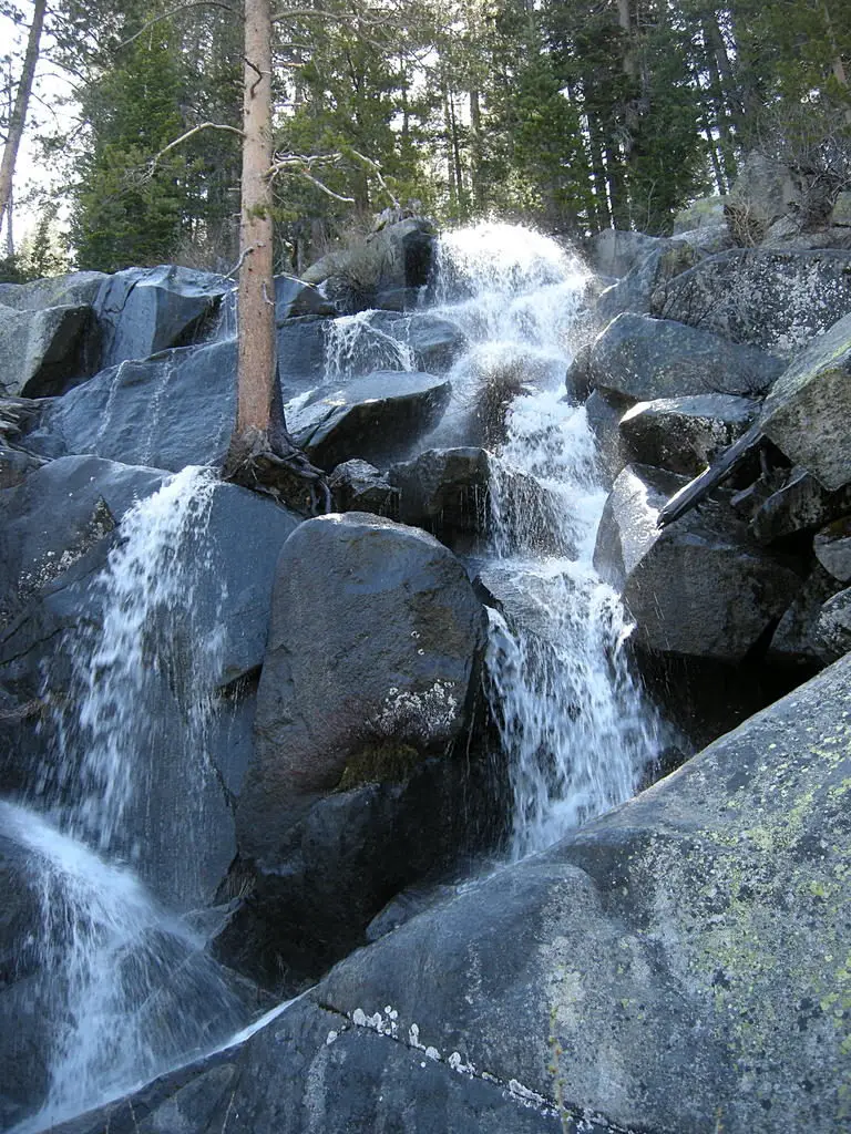 La competencia con las caídas más grandes en Yosemite significa que estas caídas - también conocidas como Tioga Pass Falls - son poco visitadas.