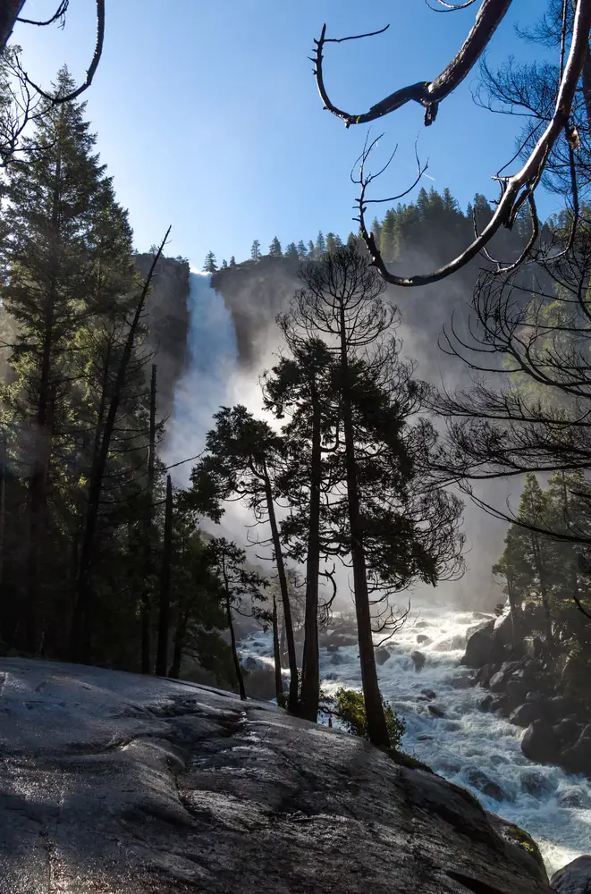 Se puede caminar hasta esta cascada de 320 pies, aunque el sendero Mist Trail es bastante empinado. Está abierto en invierno, a menos que se ponga realmente helado.