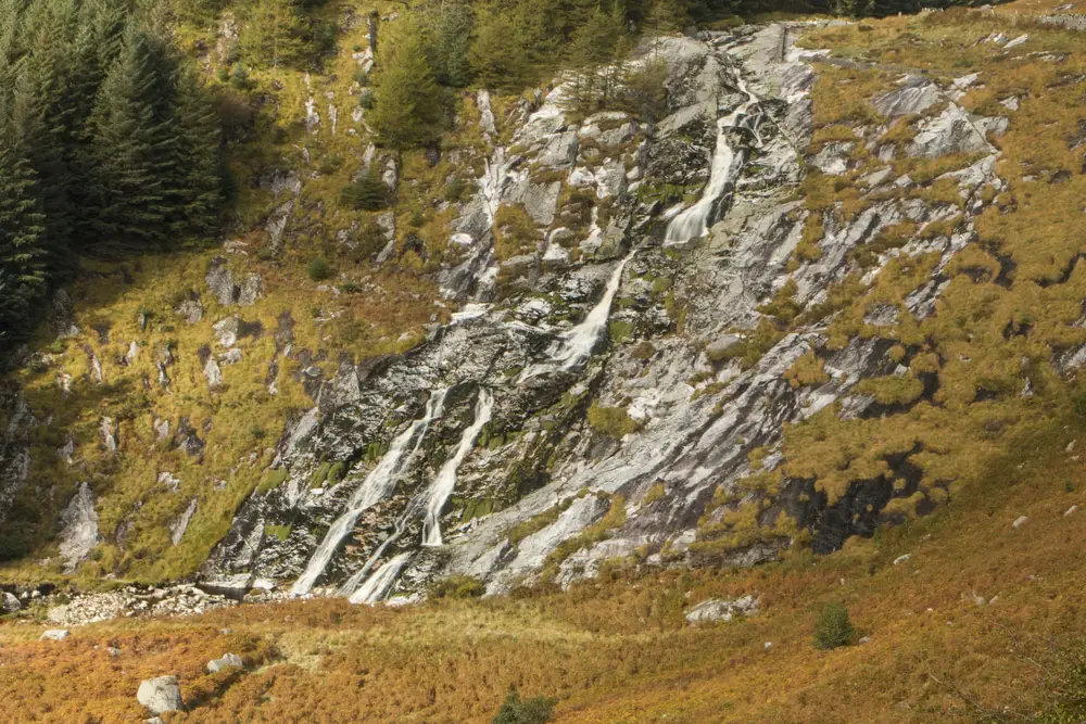 Situada cerca de la ciudad de Laragh, en el condado de Wicklow, en la esquina noreste de Irlanda, Glenmacnass Waterfall alcanza casi 270 pies por encima del campo, lo que la convierte en una de las cascadas más sorprendentes de Irlanda.