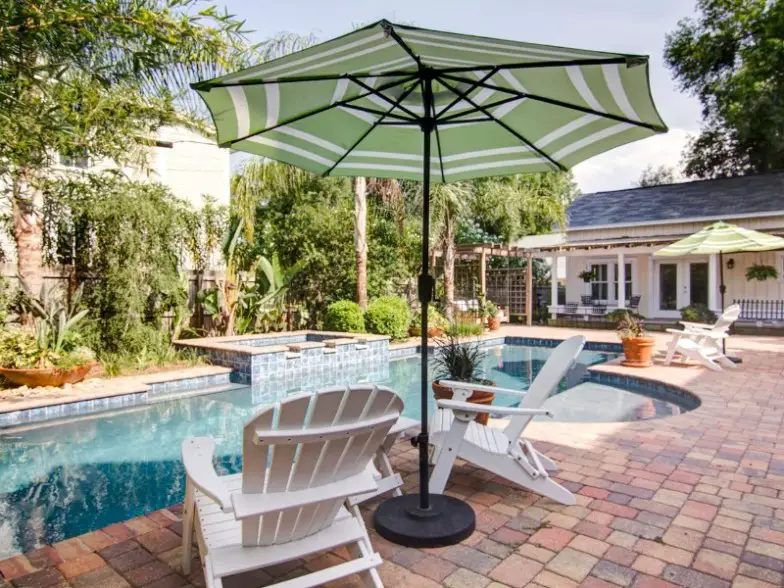Who says you have to stay in a house to have Airbnb pool access? This vintage Airstream camper is one of the most popular Airbnbs in Florida and has a large pool area and hot tub that guests can use and that’s less than 50 feet from the camper. It’s a great choice for couples and solo travelers, and dogs are allowed for a $50 pet fee. This area is less than five miles from the Anna Maria Island beaches. The full, private bathroom is by the pool area and outside the camper. This property is shared with a tiny house and loft apartment, and it offers fast Wi-Fi throughout the property.