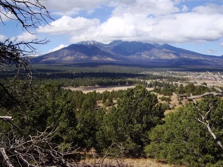 Flagstaff offers beautiful mountain hikes, including treks to Humphrey Peaks, the highest point in Arizona at 12,633 feet, featuring one of the most scenic viewpoints in the San Francisco Peaks, including the Grand Canyon on a clear day. If you’re not up for a strenuous, rocky hike, the Kachina Trail is 5.5 miles one way and traverses the southern slopes of the San Francisco Peaks, bringing the greatest reward to effort ratio of any trail in the area with relatively little elevation change. It passes through conifer groves and aspens edged by lush meadows before providing great views of the mountaintops above and hills below.