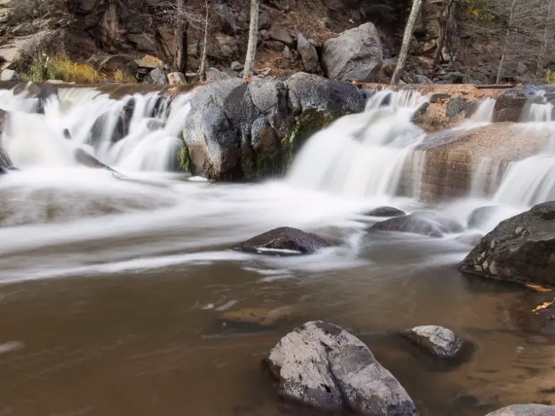 A short drive outside the red rocks of Sedona is 12-mile-long Oak Creek Canyon, where Oak Creek flows through year-round along the bottom, providing opportunities for swimming, along with water for wildlife and plants. Its depth ranges from 800 to 2000 feet and there are trails providing access from the bottom up to the 6500-foot eastern rim and the 7200-foot western rim, some of which traverse historic routes early settlers used to access the top of the plateau before the road was built. The West Fork Oak Creek Trail is a six-mile round-trip hike, offering views of the colorful canyon walls, and during the spring and early summer months, native wildflowers and hummingbirds.