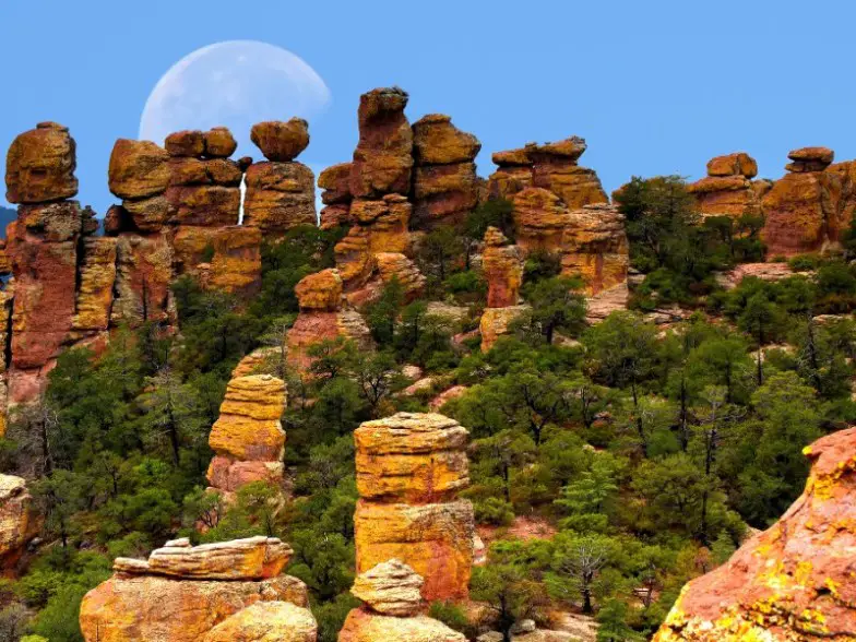 Tucked into Arizona’s southeastern corner, Chiricahua National Monument is a hidden gem with remarkable stone formations. A wonderland of spires, columns and boulders, the network of trails offers multiple hiking options. For a short trek, the 1-mile Echo Canyon Grottoes offers an excellent introduction to the monument’s wilderness area and the chance to walk among the rock formations. If you’re up for something a bit longer, the Echo Canyon Loop spans 3.3 miles and also features magnificent formations like the Grottoes and Wallstreet, along with lots of desert plants.