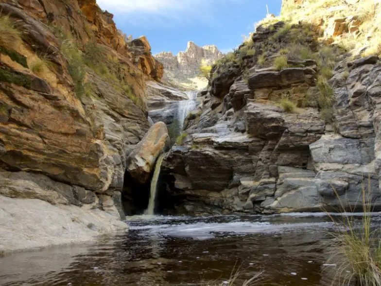 There’s a surprising oasis near Tucson with cascading waterfalls just beyond the city limits in the Santa Catalina Mountains. Outstanding scenery abounds throughout the Santa Catalinas, with everything from steep rock cliffs to foothills covered with unique desert plants, but the Seven Falls Trail is one of the best to take in the spring as it’s when the cascades are typically going full force. About eight miles round trip, allow at least four hours to cover it, starting at Bear Canyon Trail in the Sabino Canyon Recreation Area.