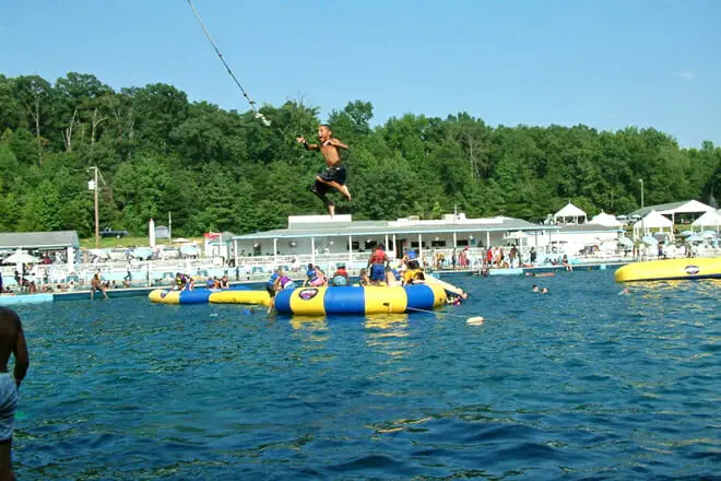 Al visitar el lago Hadad, sus hijos pueden ir a nadar, balancearse con cuerdas mientras caen al agua, saltar en trampolines flotantes, andar en botes de remos y mucho más.