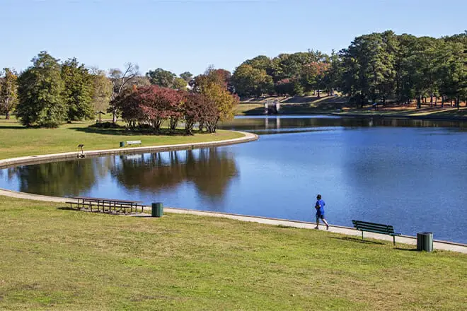 Durante el verano, su familia puede divertirse dando paseos en bote a pedales en Fountain Lake, un lago popular en Byrd Park. En este lago, incluso puede enseñar a sus hijos a lanzar una línea y pescar.