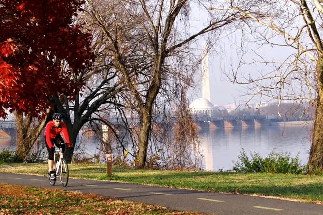 Con una extensión de más de 18 millas, el sendero Mount Vernon es una visita obligada para las familias que disfrutan andar en bicicleta juntas.