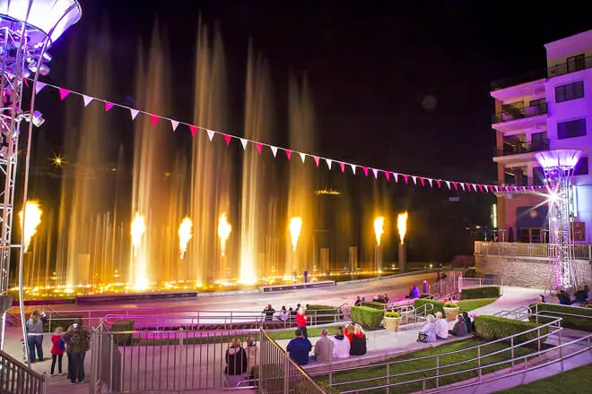 Para una experiencia económica de diversión familiar, pase por Branson Landing y sorpréndase con su magnífico espectáculo de fuentes. Las familias pueden sentarse y experimentar el espectáculo coreografiado de columnas de fuego y géiseres de fuente de 100 pies con éxitos musicales y luces.