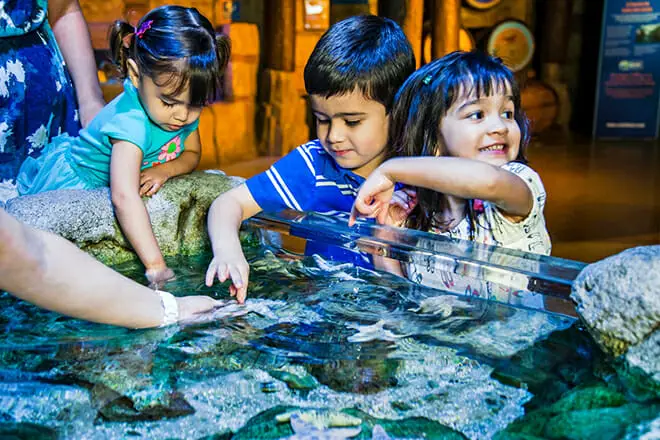 Pasear por el acuario no es la única manera de explorar el lugar. Puedes ver un espectáculo o acercarte y acariciar un cangrejo, un erizo, una estrella de mar y otras criaturas en el Interactive Touchpool. O diseña tu propio pez virtual y míralo nadar a través del arrecife.
