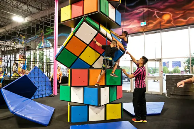 También les encantaría escalar en estructuras geniales, jugar un juego de dodgeball con un giro hinchable y ejercitar su equilibrio en una cuerda floja.