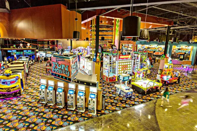 Una parada rápida en esta emocionante sala de juegos garantizará un momento emocionante para sus hijos. Tienen cientos de opciones para elegir, ya sea que quieran intentar jugar con los gabinetes de juegos, juegos de consola, máquinas de pinball, mesas de futbolín, lanzamientos de baloncesto, Jenga gigante y más.