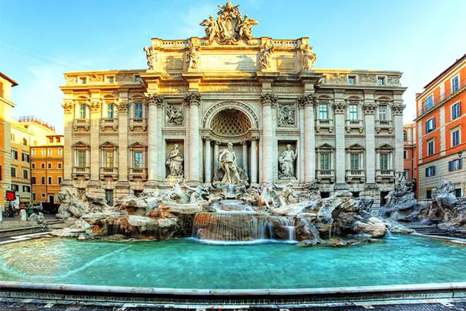 La Fontana de Trevi es la más famosa y hermosa de toda Roma. Creado en 1762, muchos turistas arrojan monedas a la fuente. Al final de cada día, las autoridades sacan las monedas y las usan para comprar alimentos para los hambrientos.