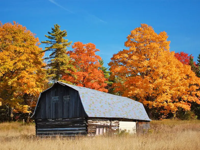 Para una escapada al Medio Oeste, Door County es uno de los mejores cuando se trata de disfrutar de los brillantes colores del otoño. Salga a la carretera para un recorrido panorámico por la autopista 57, gran parte de la cual sigue las orillas del lago Michigan, con hermosos faros, graneros antiguos y edificios de marco blanco resaltados por estallidos de escarlata, oro, rojizo y bermellón. No se pierda el Parque Estatal de Newport, que cubre casi 2,400 acres, incluidas 11 millas frente al mar a lo largo del lago, que brinda un lugar tranquilo para pescar y disfrutar también de observar las hojas.