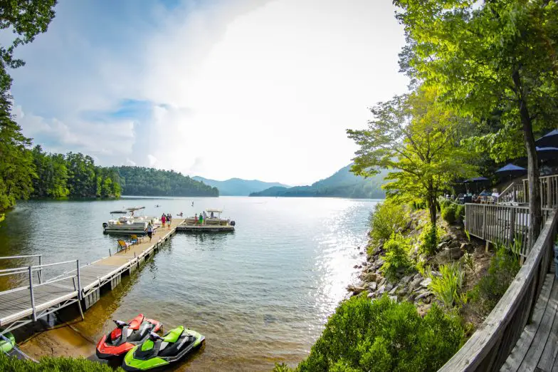 Blue Waters Mountain Lodge se encuentra en el lago Santeetlah, que ofrece 76 millas de costa mayormente protegida en el Bosque Nacional Nantahala. Disfrute de la natación, el esquí acuático, el piragüismo, los paseos en bote y el esquí acuático: el albergue puede ayudarlo a organizar el alquiler de pontones, botes de pesca, botes de esquí y motos acuáticas. Hay un restaurante en el albergue y un bar junto al lago para relajarse con una bebida después de un día de juego, mientras que las cómodas habitaciones cuentan con pintorescas vistas al lago.