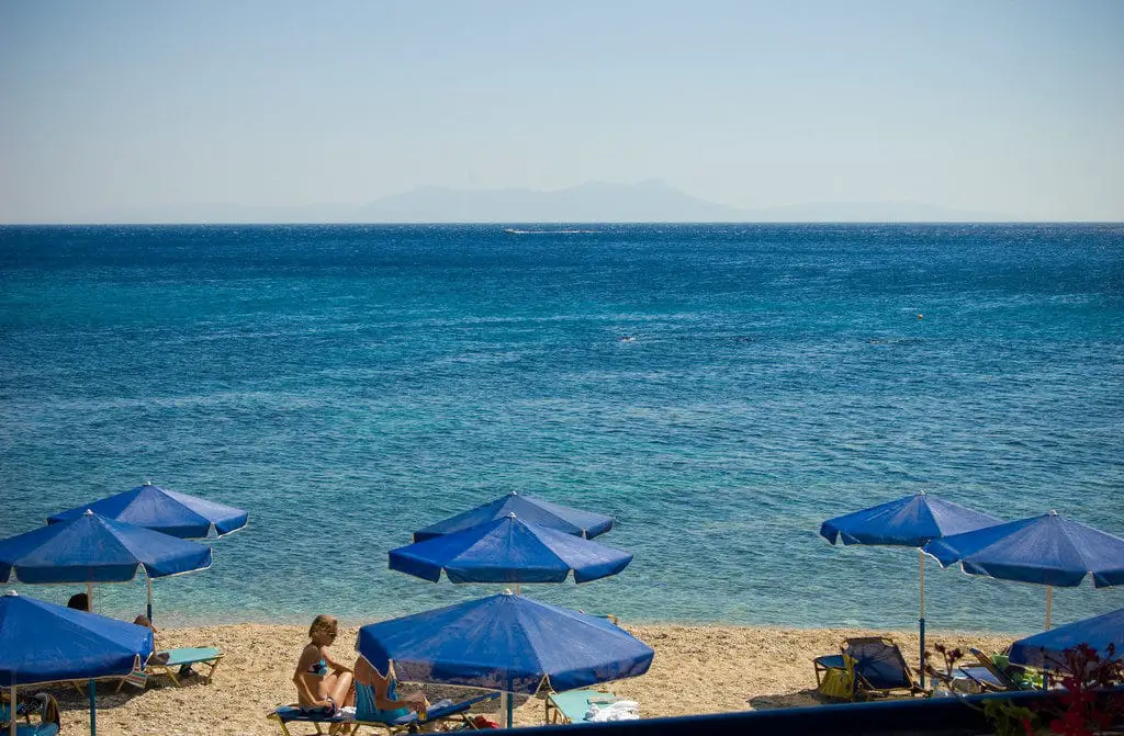 Si acostarse en una playa de guijarros parece incómodo, Agios Isidoros cuenta con todos los servicios y los restaurantes adjuntos le traerán comida y bebida directamente a su tumbona.